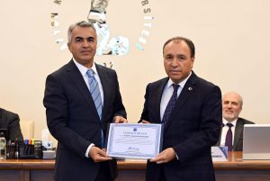 AKÜ akademik birimlerindeki akreditasyon sürecinde gösterdikleri liderlik ve özverili çalışmalarından dolayı Fen Edebiyat Fakültesi Dekanı ve Sosyoloji Bölüm Başkanı Prof. Dr. Hüseyin Koçak, Kimya Bölüm Başkanı Prof. Dr. Ömer Hazman, Tarih Bölüm Başkanı Prof. Dr. Gürsoy Şahin, Moleküler Biyoloji ve Genetik Bölüm Başkanı Prof. Dr. Ahmet Serteser ve Matematik Bölüm Başkanı Prof. Dr. Mustafa Kemal Yıldız’a teşekkür belgeleri AKÜ Rektörü Prof. Dr. Mehmet Karakaş tarafından verildi.